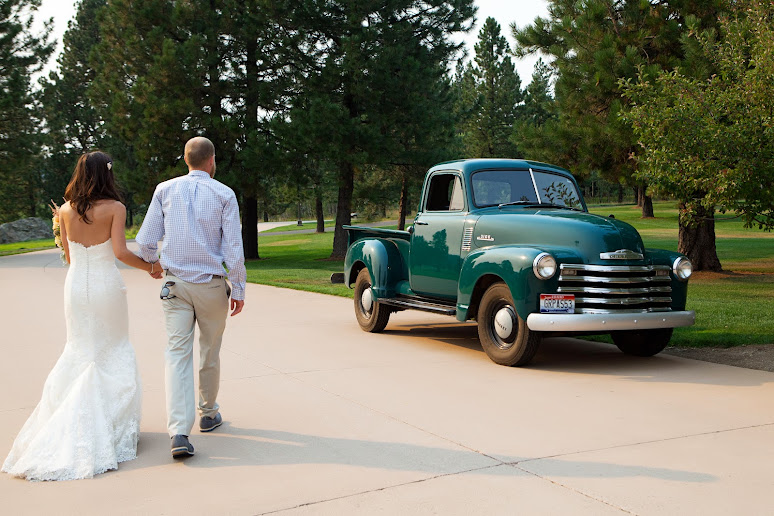 The couple left their outdoor nuptials in a gorgeous vintage truck and arrived to the reception in a vintage speed boat. These newlyweds definitely know how to travel in style.